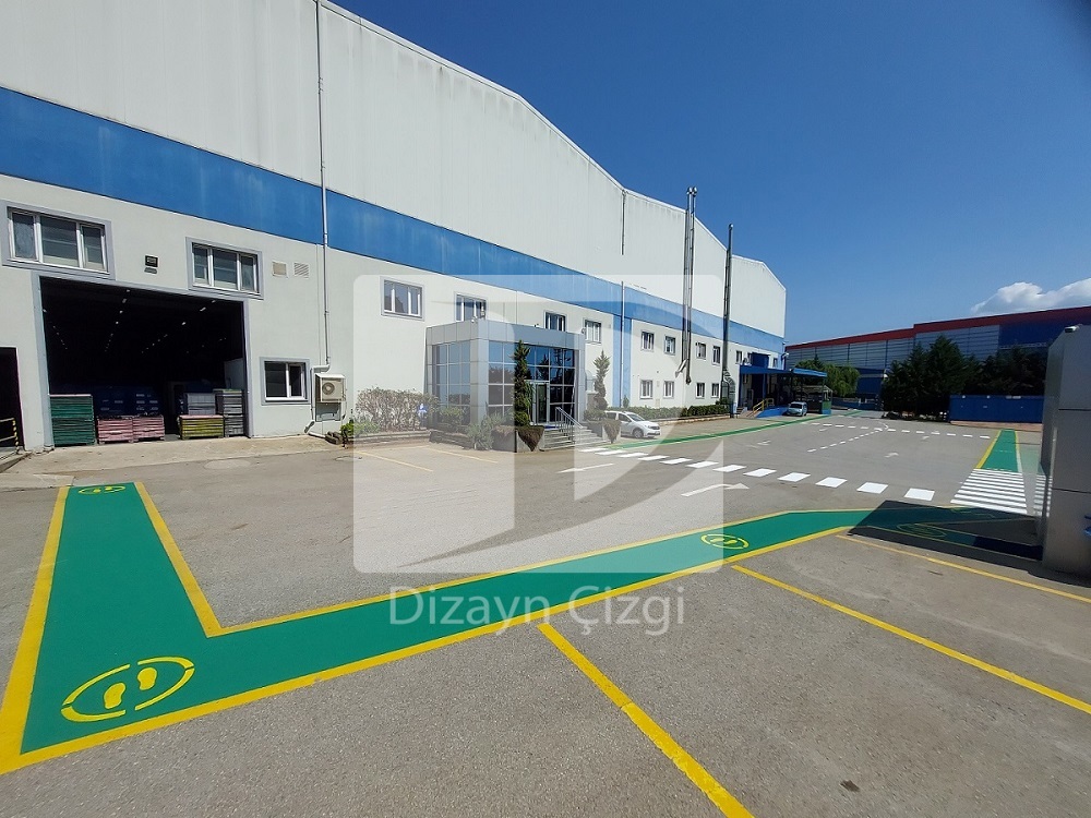 Yaya ve forklift yolları yol boyaması ve işaretlerden oluşuyor. İşaretlerle hem yönlendirme hem tanımlama yapılıyor. Yaya geçitleri ile can güvenliğini sağlanıyor.